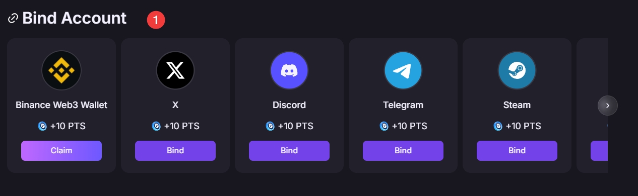 2、 每日签到和社交绑定,在参与币安活动时已完成绑定,系统会自动识别。