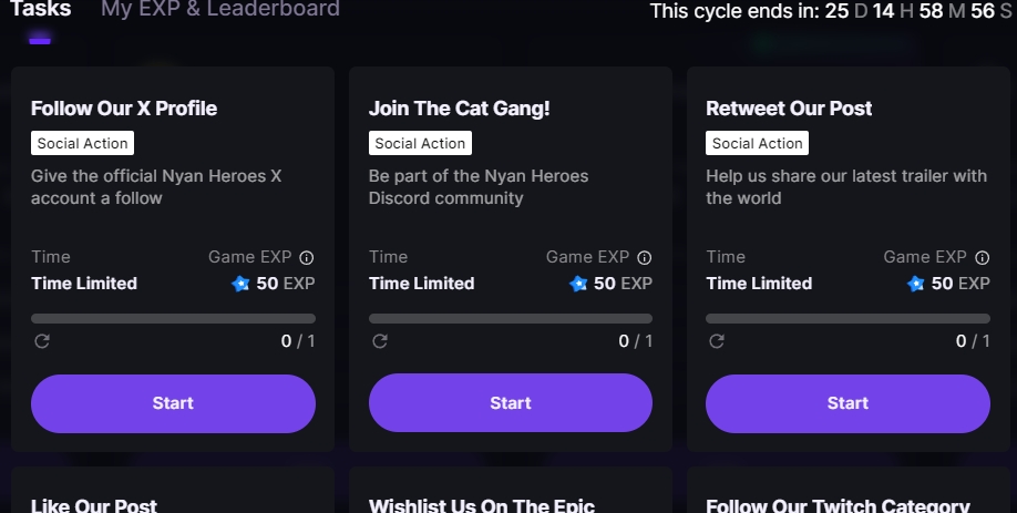 2、简单的社交任务,关注,转发,点赞,加入Dscord,订阅YouTube中Nyan Heroes频道,并且观看。