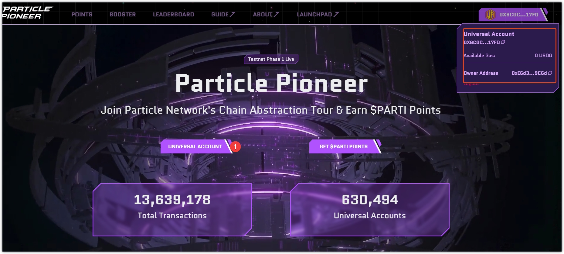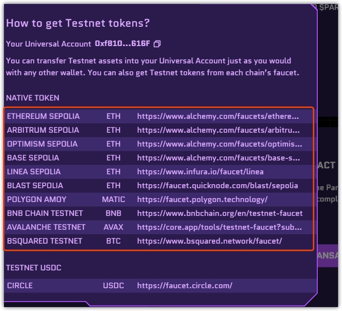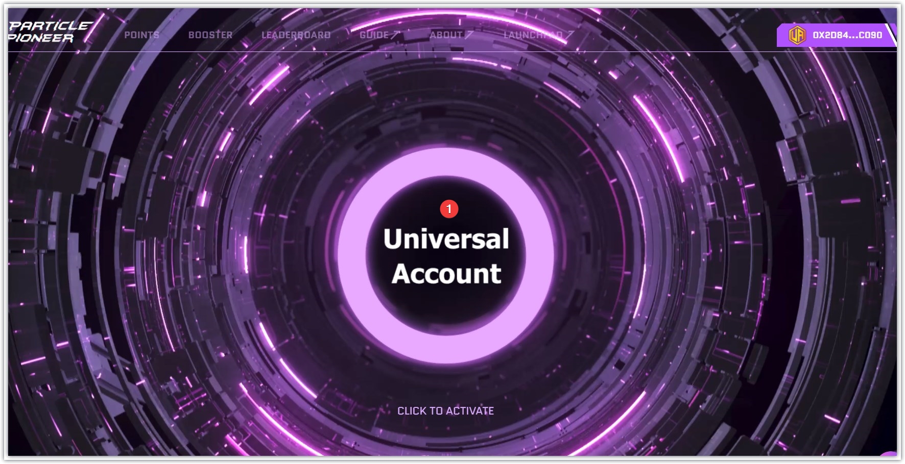 1、页面点击Universal Account ,出现一个粒子钱包地址,可以复制保存下来。