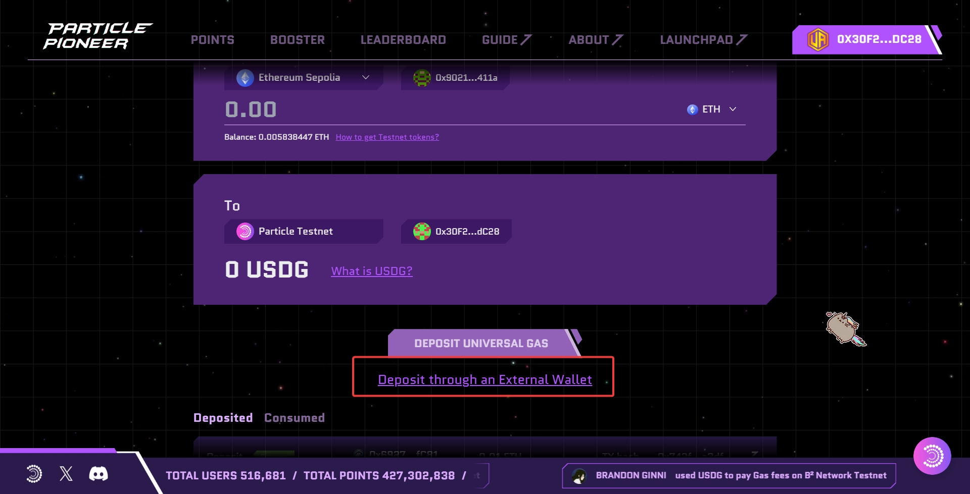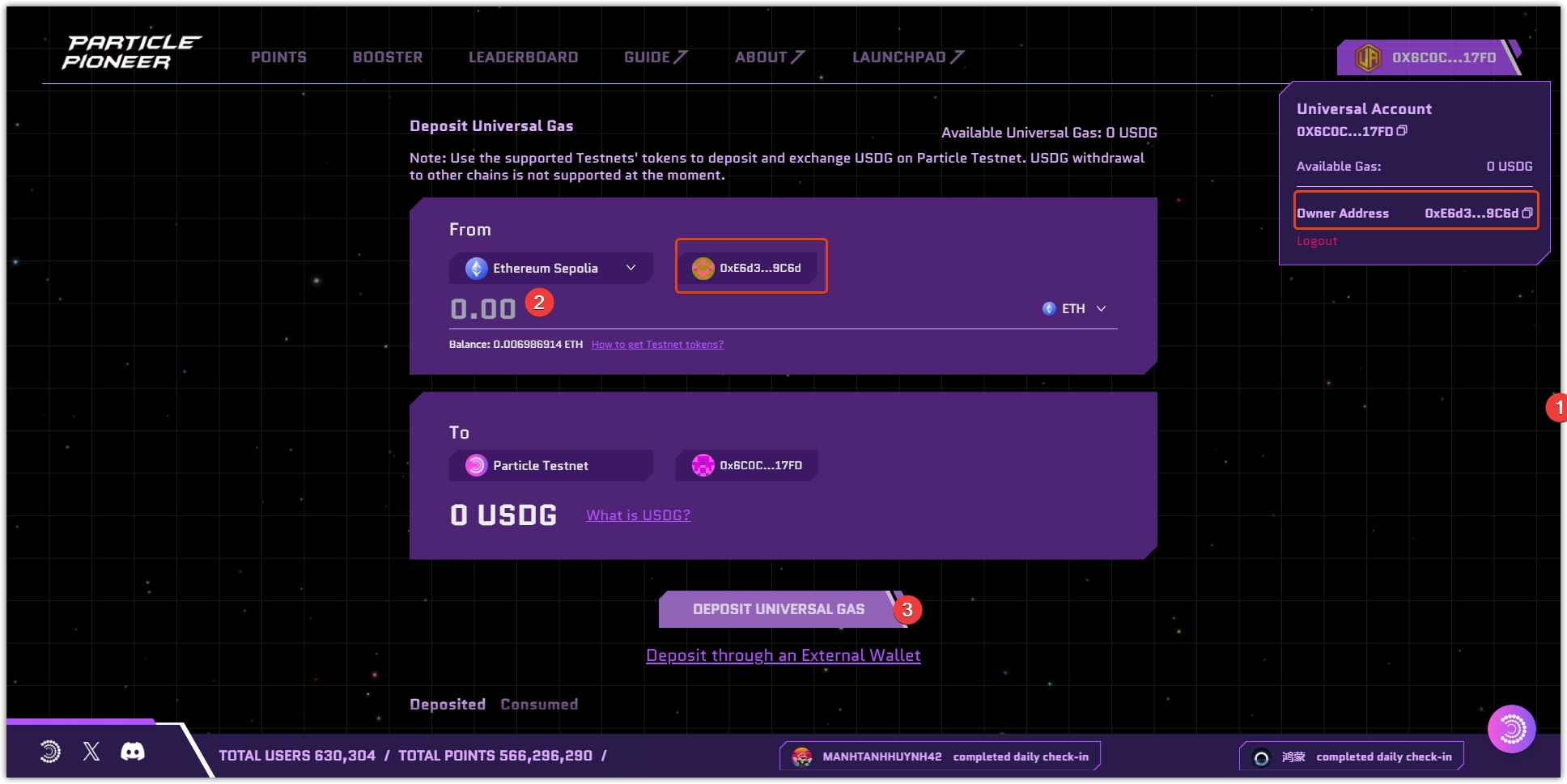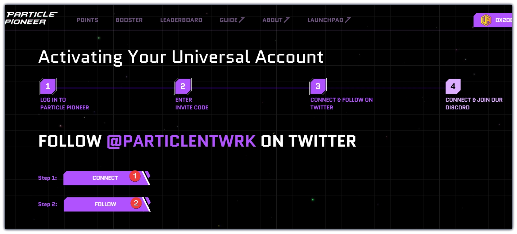 1、页面点击Universal Account ,出现一个粒子钱包地址,可以复制保存下来。