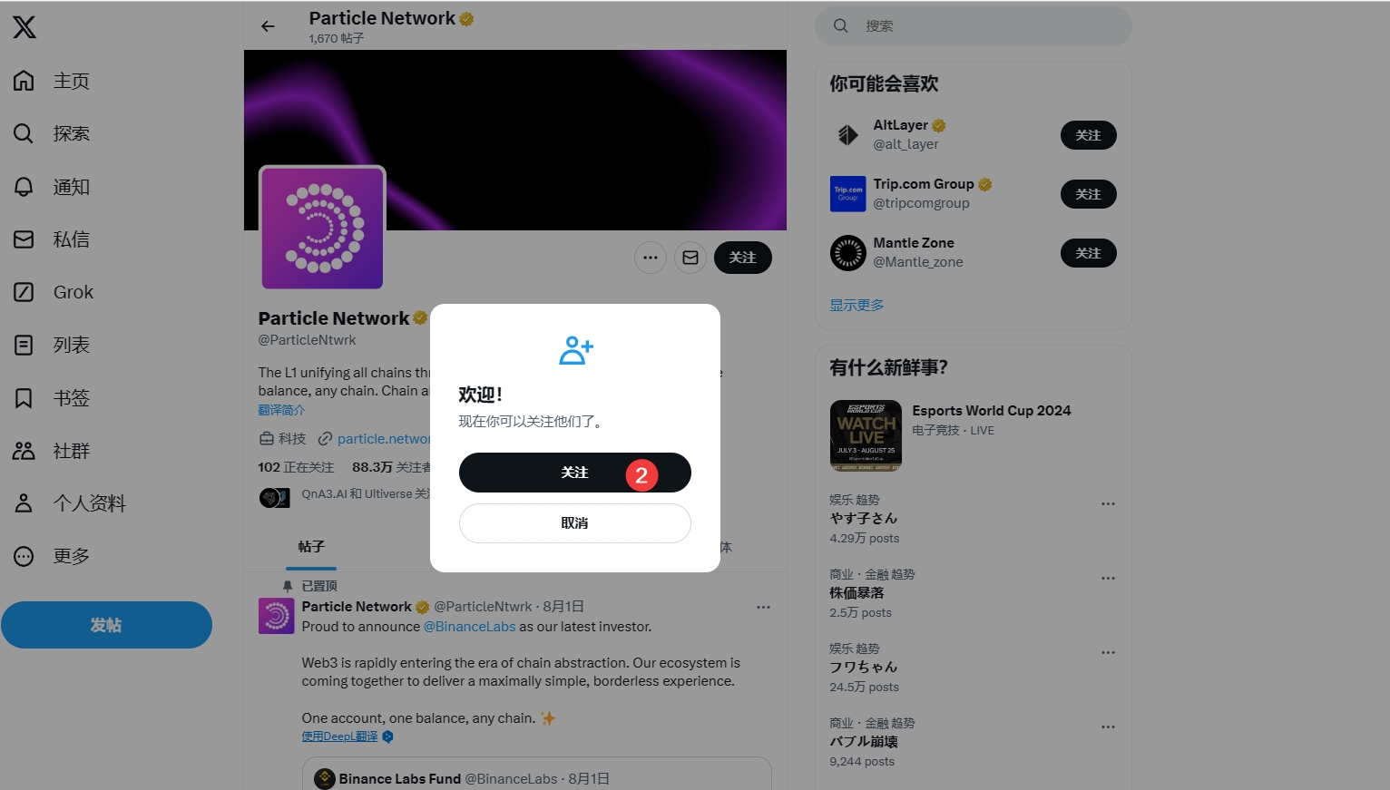 5、先把所有合作的官方推特进行关注,获取积分