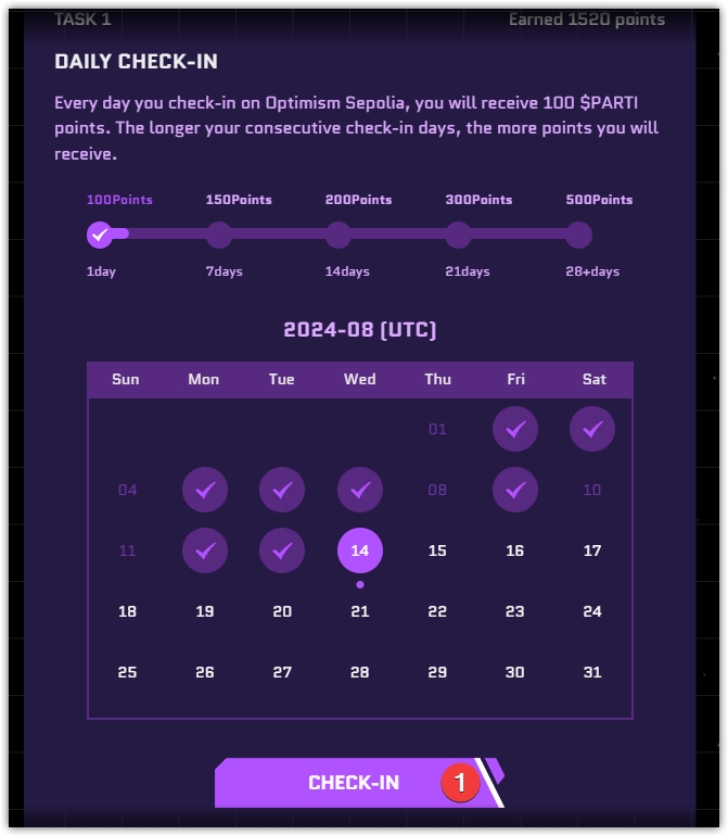 ⭕⭕提示:同时也要到people launchpad那边每天签到,不清楚的可以看一下文章 。https://airdrop.wejoinweb3.com/wei-fen-lei/peoples-launchpad-zhu-wang