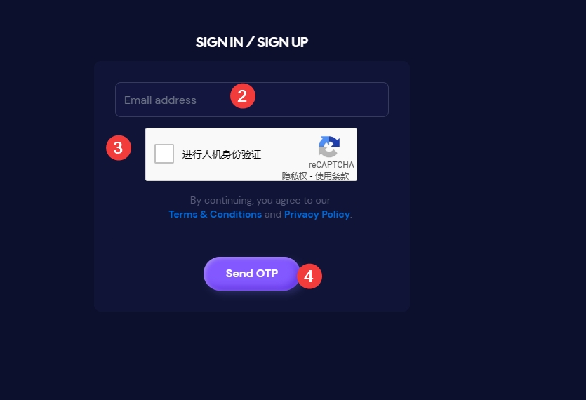 6、任务四:点击Sign in,使用邮箱登录,进行人机身份验证,输入验证码,链接钱包。