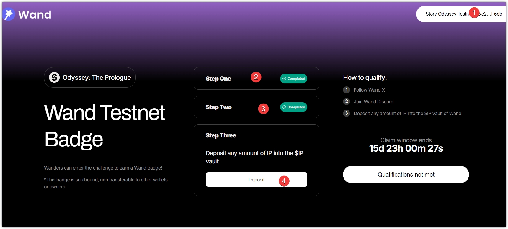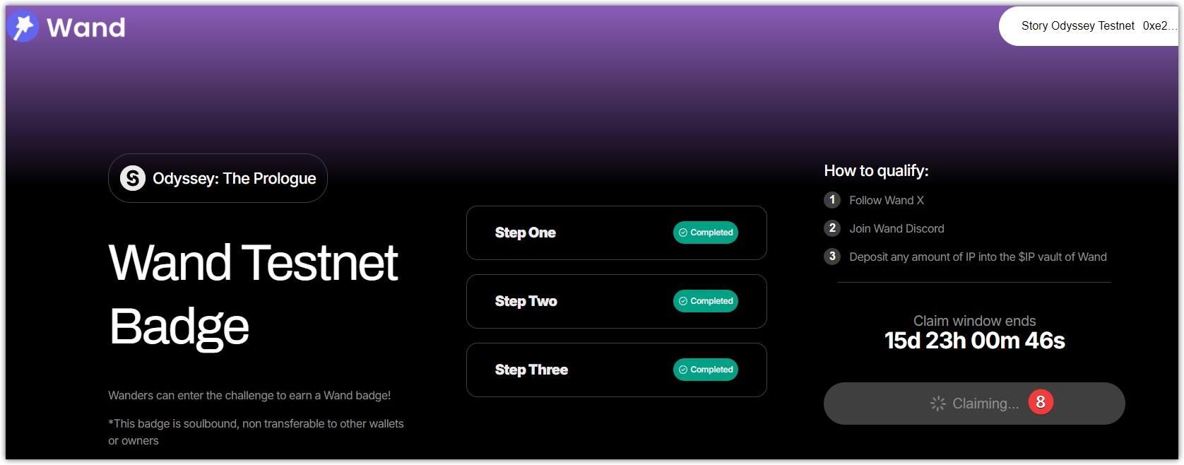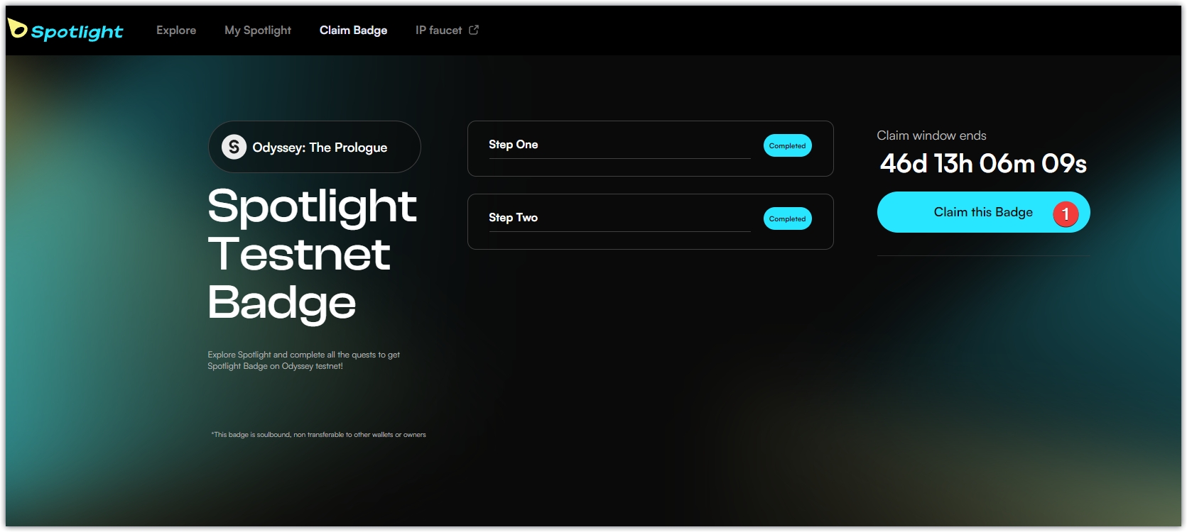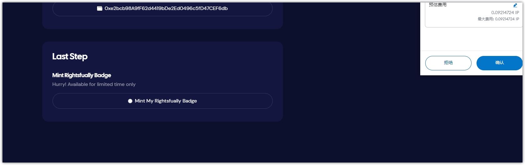 6、任务完成后,返回页面刷新,点击Claim Badge,钱包确认,完成铸造徽章。