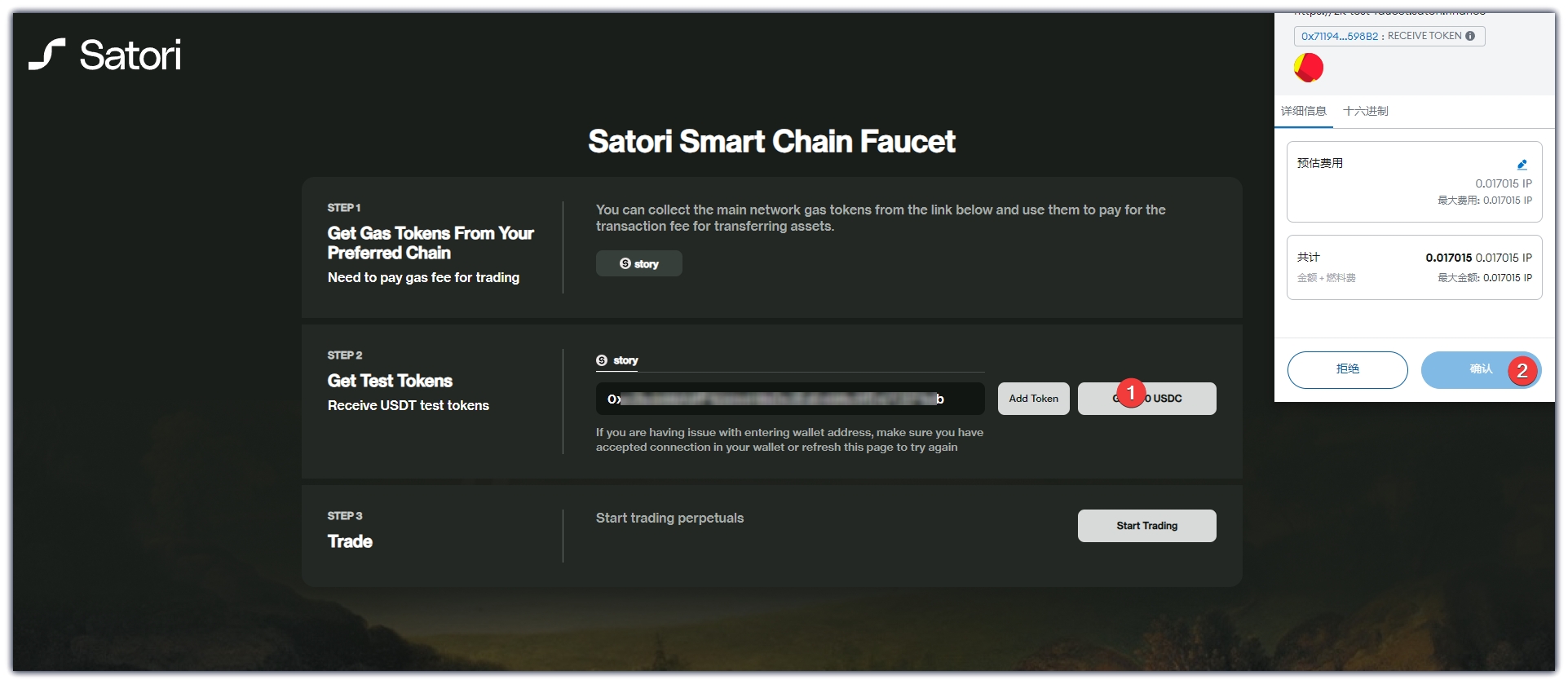 准备资金:测试代币