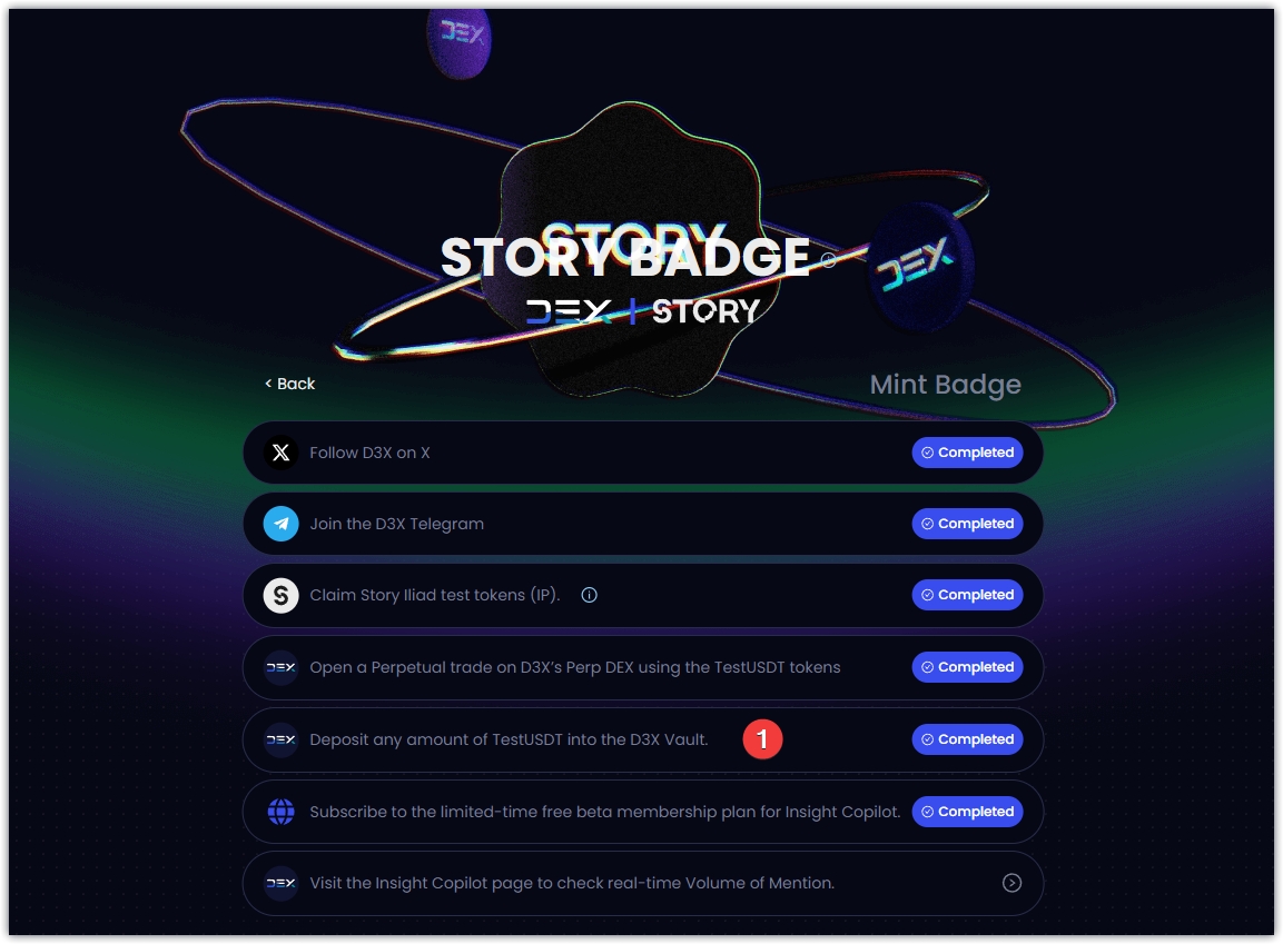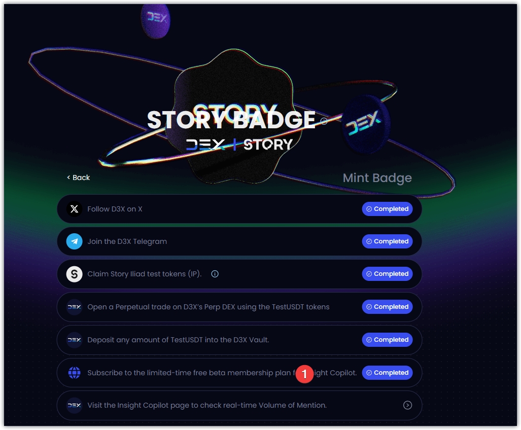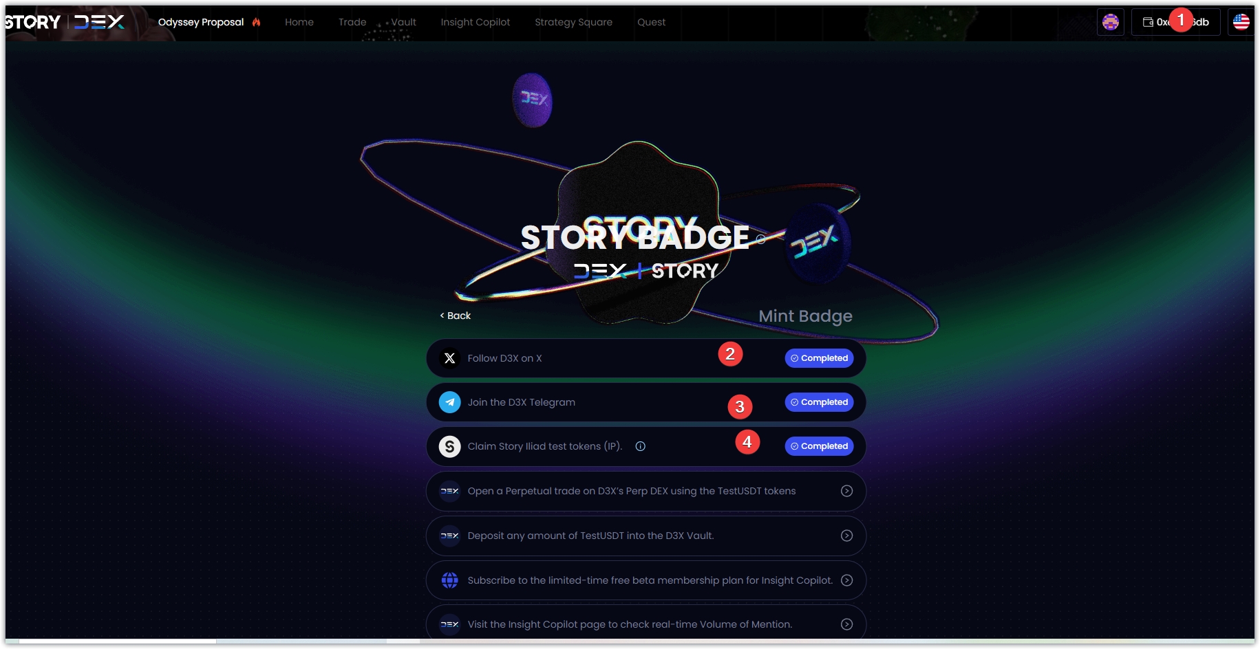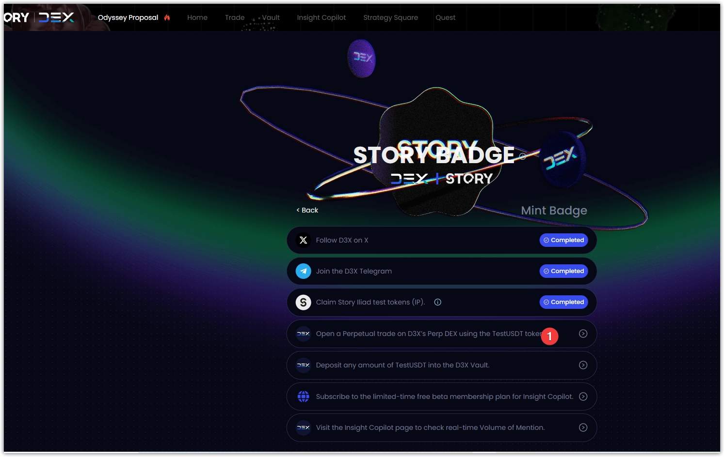 1、链接: https://story.d3x.exchange/odyssey-proposal?current=mint-badge-list