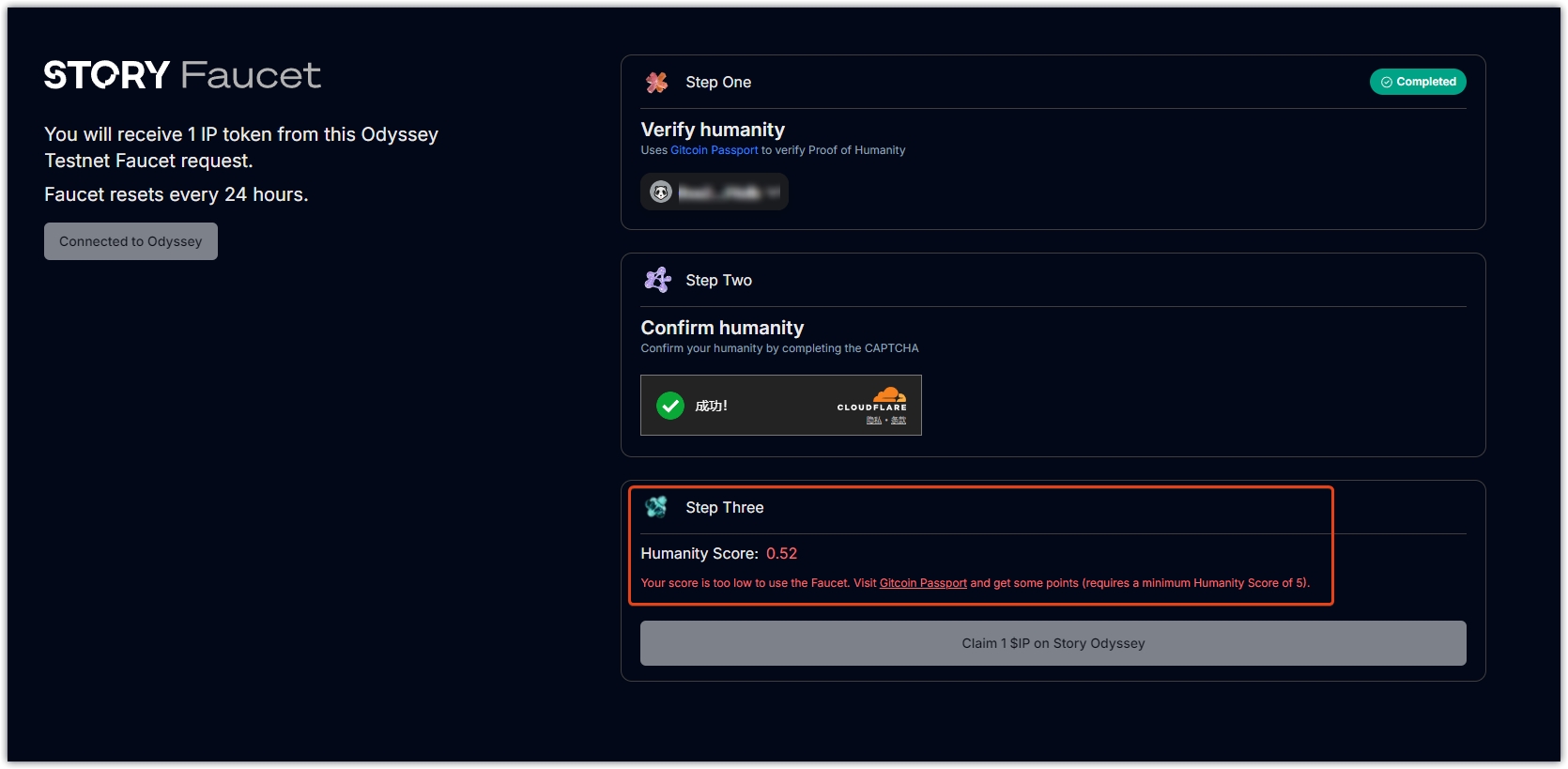 5、任务三,领水,我这个是新钱包,达不到分数,无法领水,领完之后返回页面刷新就会通过了。