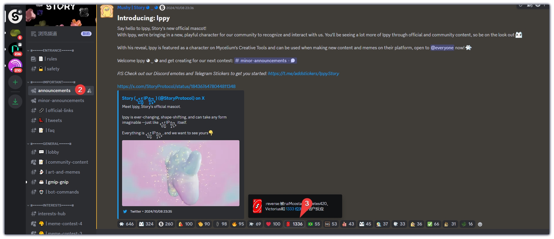 2、点击链接,跳转到DC,接受邀请,进行验证,通过之后,点击announcement 频道后,在页面上点击红色小卡片,获取Reverse角色。