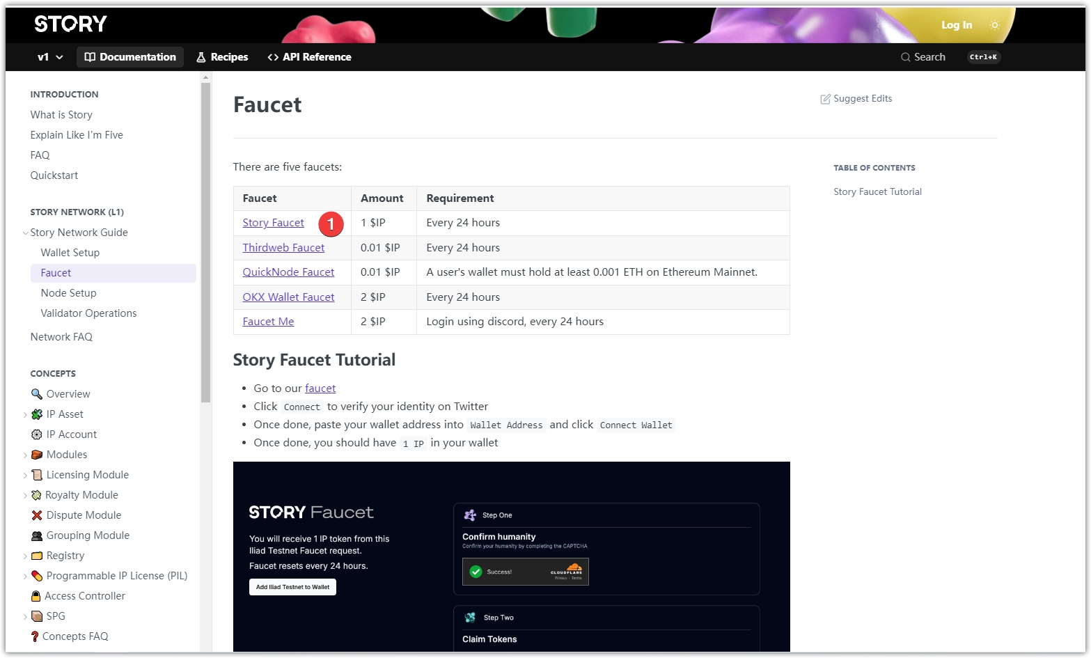 1、链接: https://docs.story.foundation/docs/faucetarrow-up-right