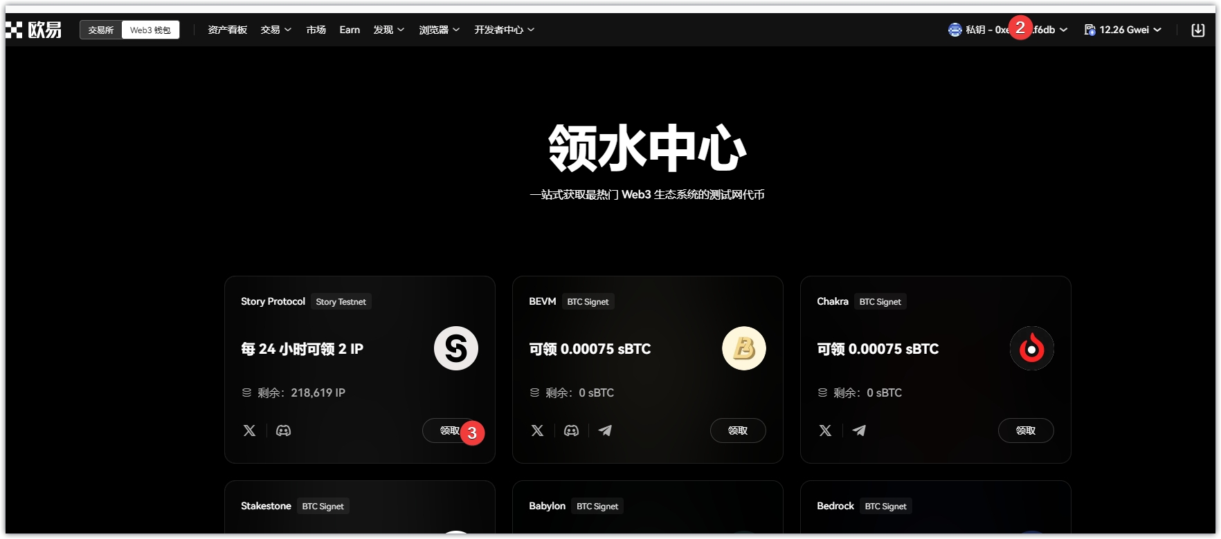 6、点击OKX Wallet Faucet,跳转到页面上,链接钱包,点击领取,进入页面,完成任务,钱包余额大于10U,转发推文,关注官方推特,点击领取即可。