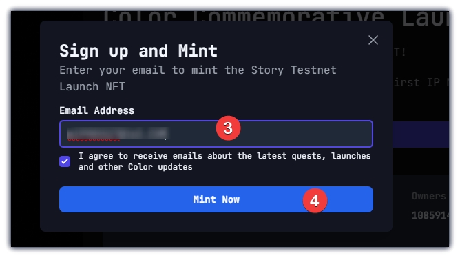 2、进入页面,链接钱包,点击MINT,输入邮箱,点击Mint Now,钱包签名。