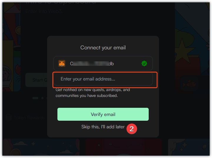 2、进入页面,链接钱包,输入邮箱可以暂且跳过,页面下滑找到Fueling the Story Protocol。