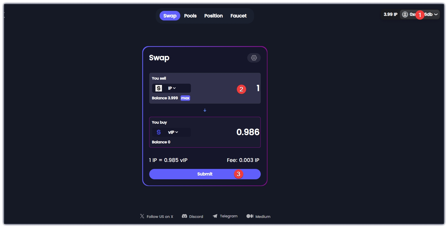 (1)进入页面,链接钱包,选择兑换代币,输入数量,点击 Submit , 钱包确认,