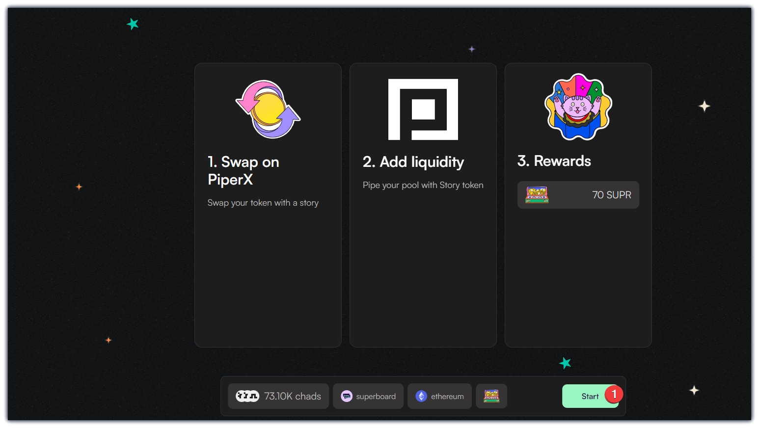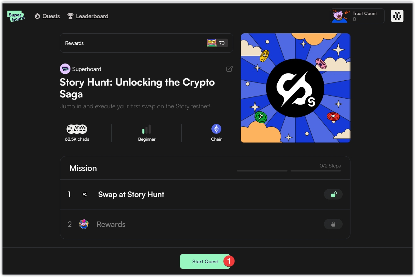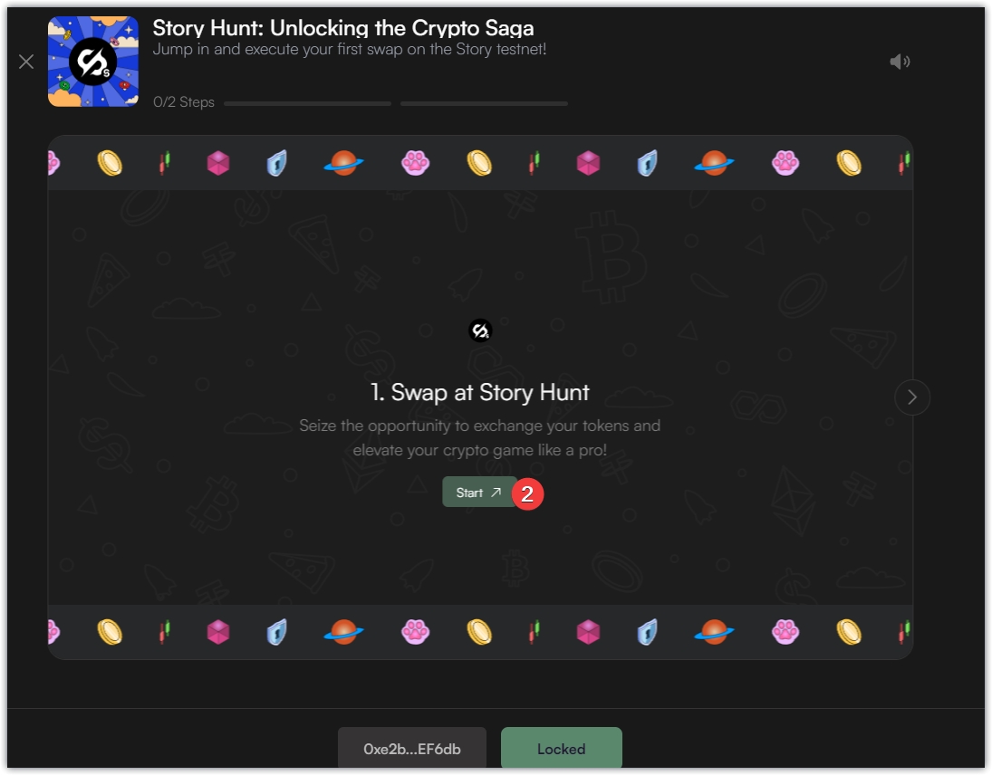 6、点击Start Quest后,点击Start,进入页面,链接钱包,选择代币,输入数量,点击Swap在弹出的窗口中点击Confirm Swap,钱包确认。