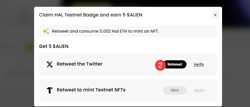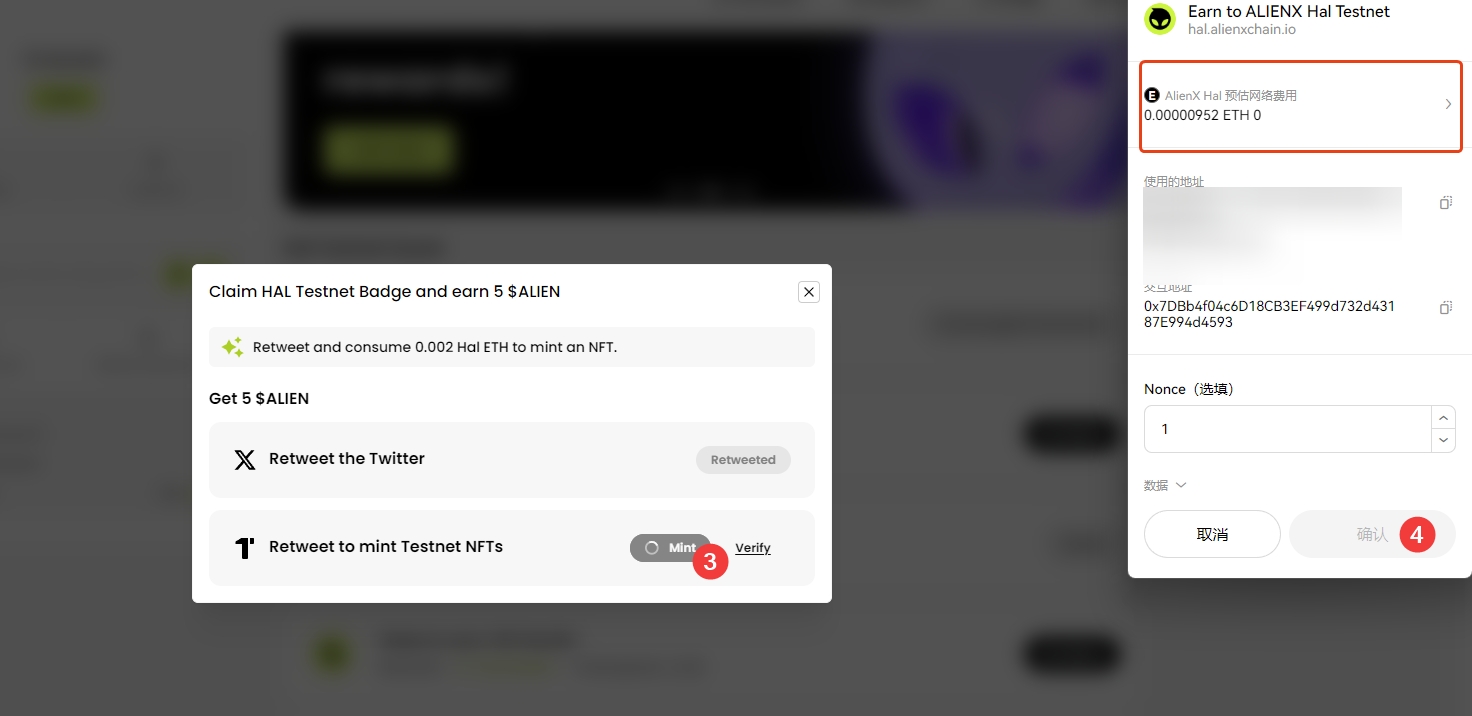 2、转发推特,铸造测试网NFT,钱包签名。