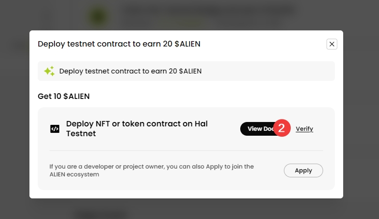 5、部署测试网合约,点击Go Now,点击View Doc。跳转到页面,点击Remix,鼠标移键移到代码上,点击copy,复制代码,回到部署合约网站页面,粘贴到面板上面,每一条点击一下回车键,点击Solidity compiler,点击Copile Alienx.sol。
