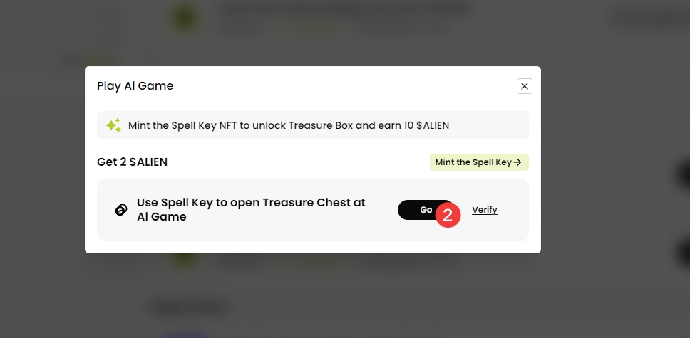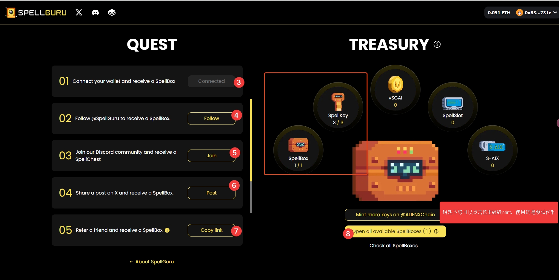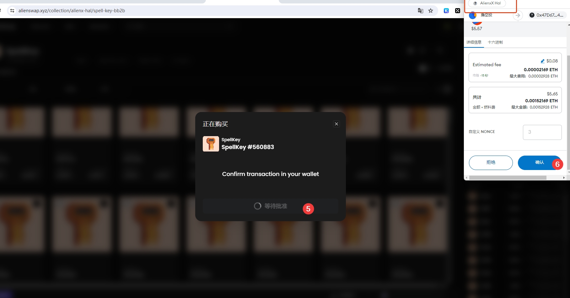 6、 建议用Alienx Hal测试网络买SpellKey NFT,每次2分,买5次,后面开箱可用。
