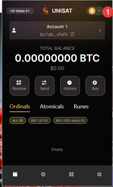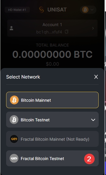 1、打开插件钱包,选择网络,选择Fractal Bitcoin Testnet
