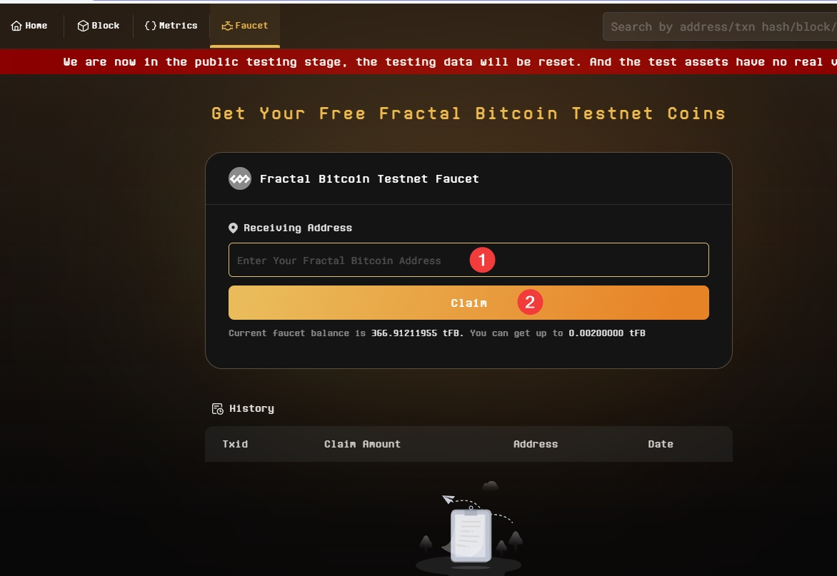 3、链接: https://explorer-testnet.fractalbitcoin.io/faucet