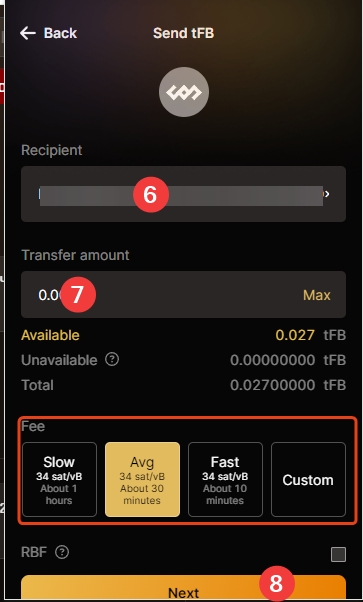 1、打开页面,直接跳转到Block,选择区块,任务区块都可以进行选择的,点击进去,选择Transactions,复制地址,打开Unisat钱包,粘贴地址,并发送代币,数量随意,速度自由选择,点击Next,钱包确认,交易成功即可。