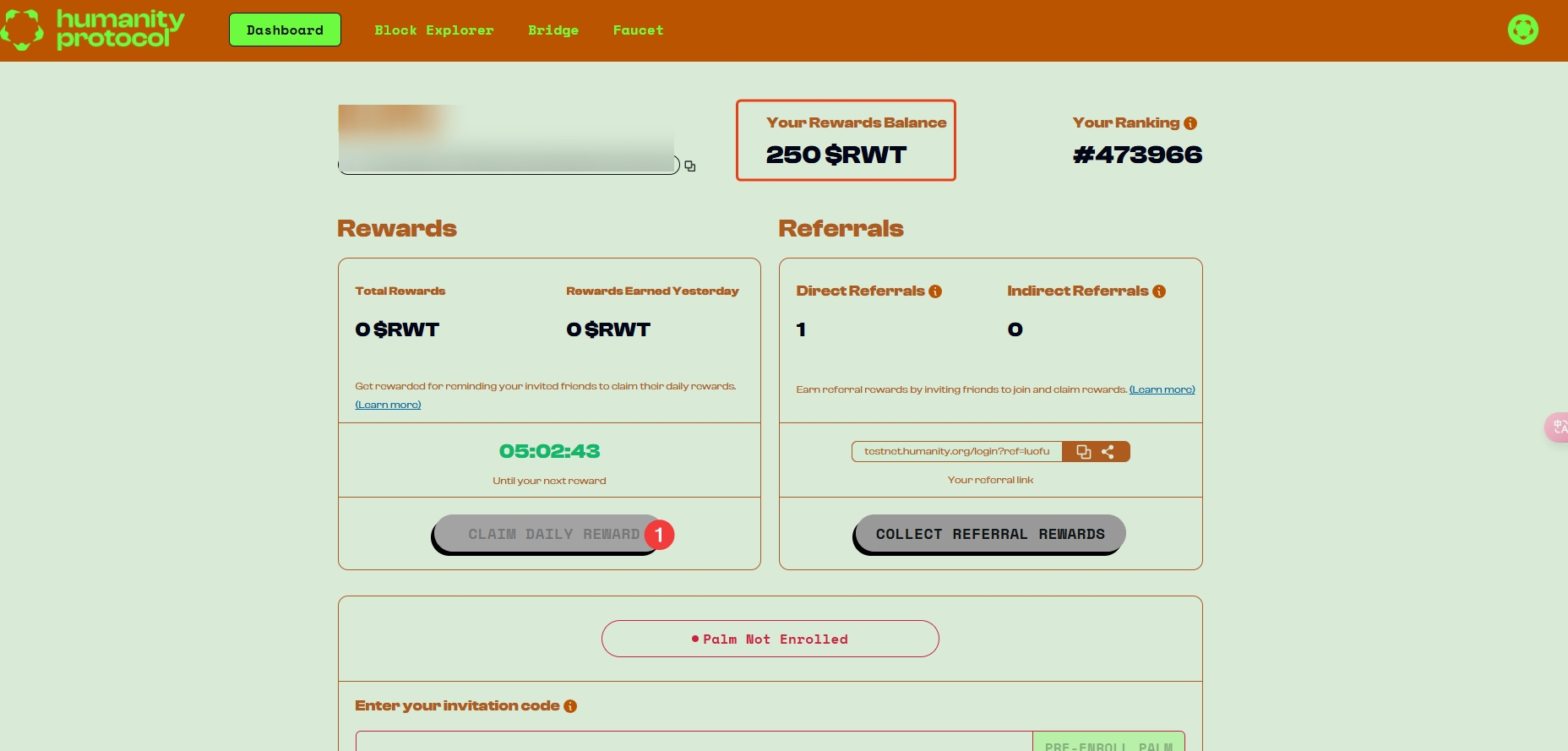 提示:钱包确认后,需要链上确认,时间有点长,如果点击CLAIM DAILY REWARD无反应,可以关掉梯子,或者退出重新登录后再点击。
