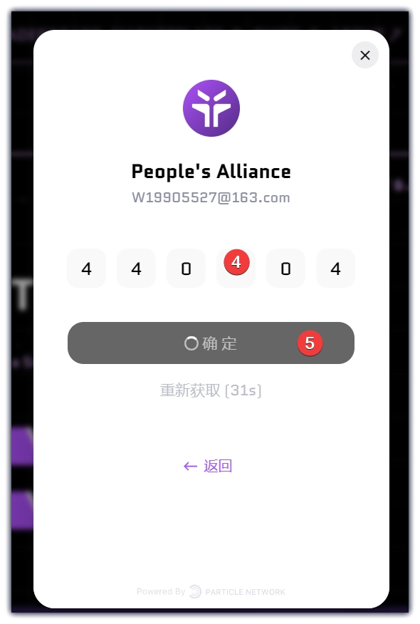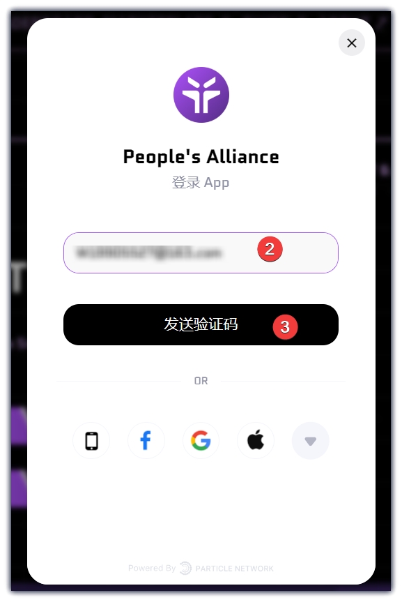 2、进入页面,使用邮箱登录,在弹框中输入邮箱,点击发送验证码,输入验证码,点击确认。