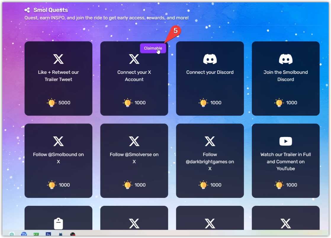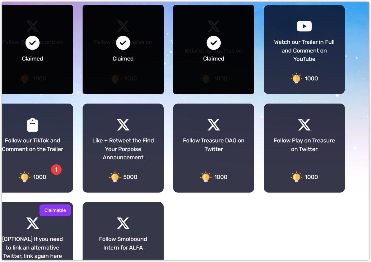 1、Complete Quests,进入页面,关联X账号,回到页面点击Claimable,进入页面点击Claim Reward,,即可获取分数,关联X账后,就都是一些简单的关注合作的项目方的X官方账号与点赞,转推而已了。