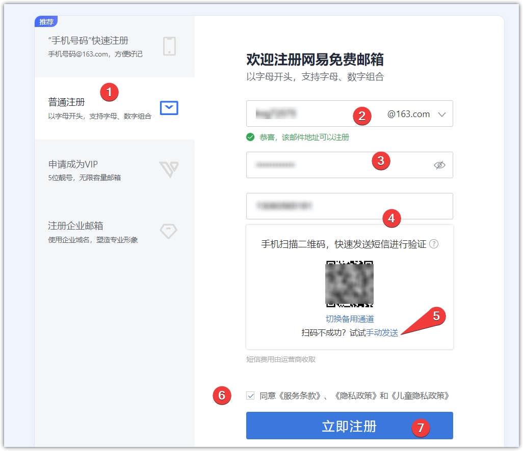 2、进入页面,点击普通注册,根据提示输入以字母或数字的组合,输入密码,手机号,使用手机进行验证,打勾,点击立即注册。