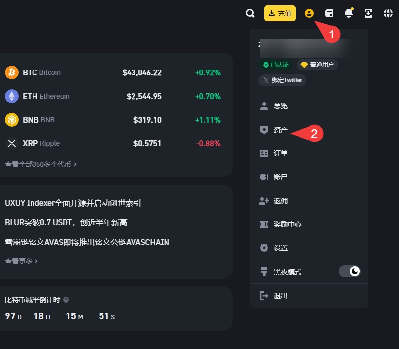 1、页面左上方点击小人头像,在弹出的窗口中点击资产。
