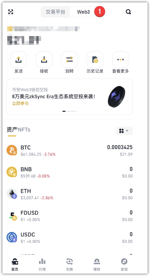 1、打开手机币安交易所,点击web3钱包