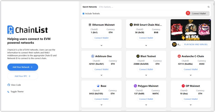 ❗❗注意:如果要添加测试网,记得把Include Testnets打勾