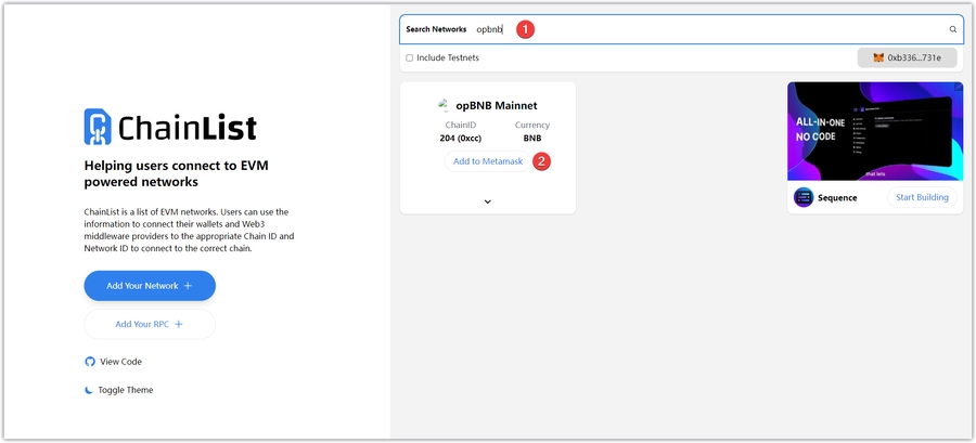 2、上方搜索栏中输入所要添加的网络,点击Add to Metamask,既可添加成功。
