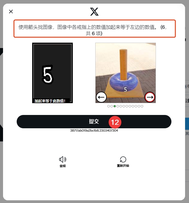 6、根据提示,使用箭头点击与图片当中的数字一样,点击提交,总共有6题,每一次创建账号的验证都是不一样的,所以根据提示的指引进行完成就好了。