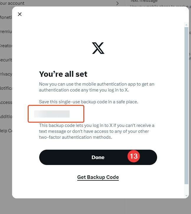 7、将一次性代码保存好,后面如果登录期间,无法接收短信或访问任何其他双因素身份验证方法,此备份代码