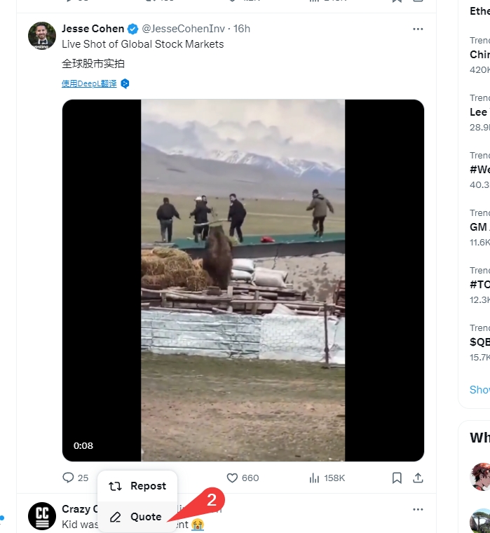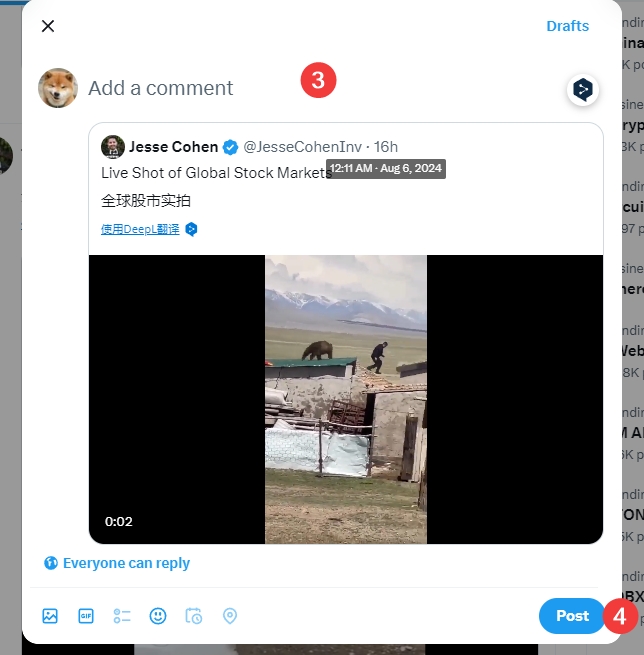 2、如何转发(repost,retweet)看到想转发的推文,直接点击双箭头,点击repos